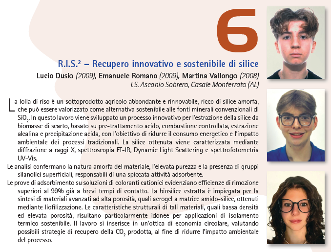 Lucio Dusio (2009), Emanuele Romano (2009), Martina Vallongo (2008) I.S. Ascanio Sobrero, Casale Monferrato (AL)